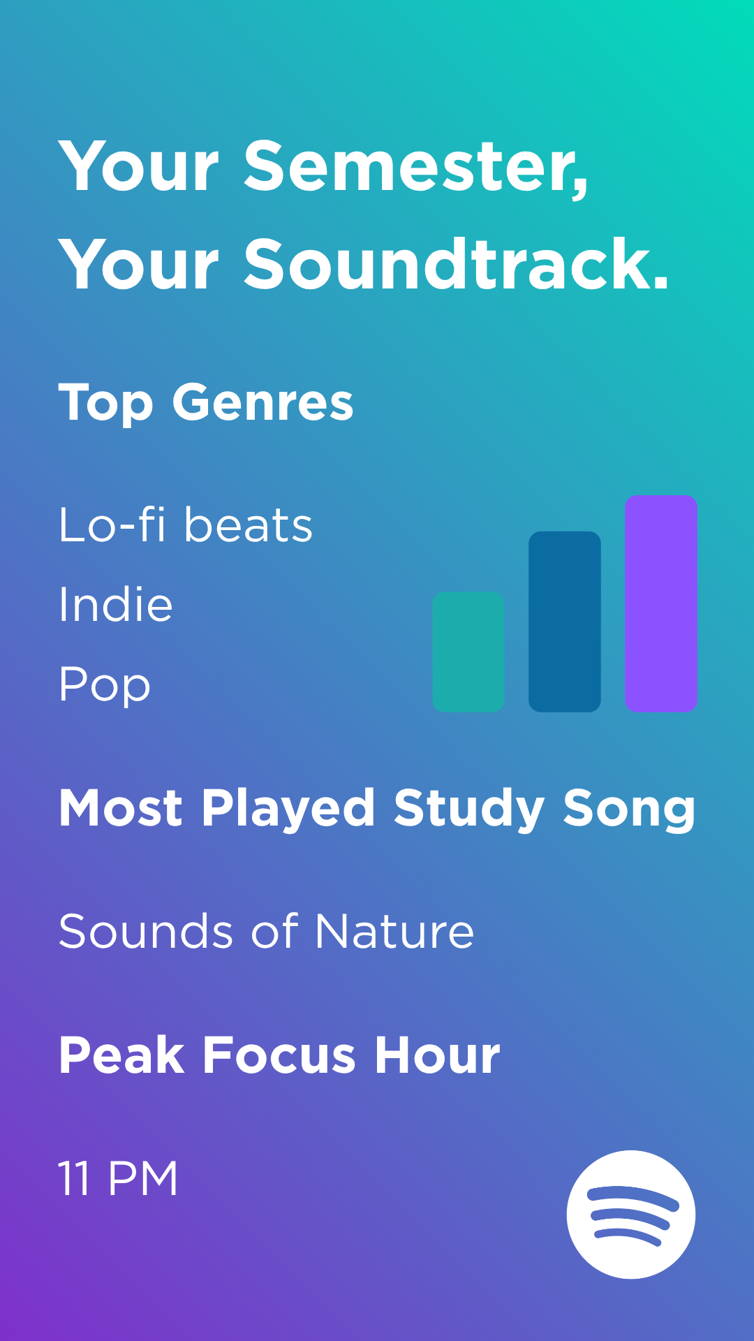 Drive deeper engagement with student audiences by framing Spotify as more than an entertainment app — instead as a personalised tool that supports study and student life.